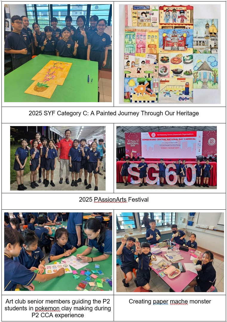 Students are encouraged to represent the school in various art competitions and events. This year, our students took part in Singapore Youth Festival (SYF) Visual Arts Competition (Primary) 2025, PAssionArts festival 2025 and external art competitions.