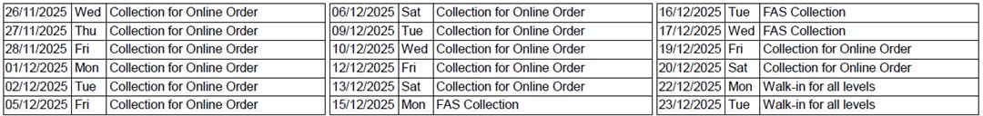 Parents are encouraged to place online orders and choose either home delivery or self-collection in school. The dates for collection of pre-ordered textbooks and/or uniforms are as shown in the table.